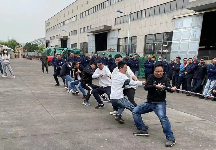 比賽以各部門為單位,每?jī)蓚€(gè)小組之間進(jìn)行淘汰賽。當(dāng)比賽開始的哨聲響起,大家全都緊握繩子,憋足了勁把繩子往后拉。比賽過程中,各部門參賽隊(duì)員努力拼搏,無論是場(chǎng)上還是場(chǎng)下,氣氛都異常緊張,富有節(jié)奏感的“一二拉,一二拉”,還有加油聲,充斥在操場(chǎng)上空。尤其是在勝負(fù)難分的時(shí)刻,大家毫不退卻,咬緊牙關(guān),堅(jiān)持到底。