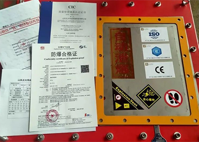 6、泄爆膜片——采用專業(yè)泄爆膜片裝置,設(shè)備內(nèi)部產(chǎn)生爆炸時,它能夠在規(guī)定的溫度和壓力下爆破,泄放壓力,保護(hù)承壓設(shè)備的安全和操作人員的生命安全,以及避免使用的環(huán)境出現(xiàn)更大的損傷,泄爆膜片的爆破壓力為0.01Mpa,有專門的證書標(biāo)識卡。