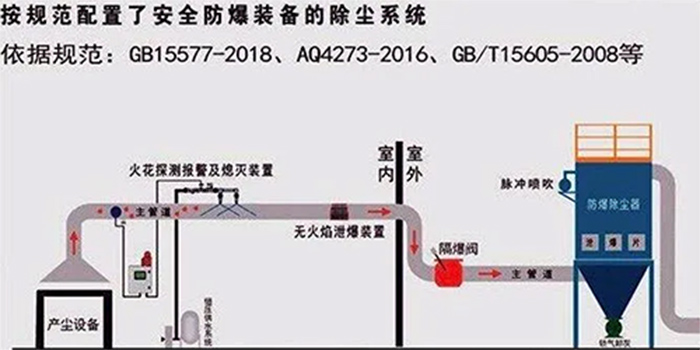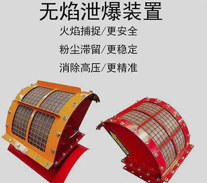 無焰泄放裝置也叫粉塵無焰泄爆裝置或者無焰泄放裝置是由火焰熄滅模板,泄爆片,防 爆接線盒和夾持器組成。可安裝于室內(nèi)除塵箱體,泄爆片有信號裝置,可以通過接線盒與風(fēng)機(jī)或者其他設(shè)備聯(lián)動。當(dāng)發(fā)生粉塵爆炸時,爆破片對快速沖擊的爆燃壓力做出反應(yīng),并打開,以釋放壓力,膨脹的火球通過時打開的爆破片被熄滅模塊攔截。從而達(dá)到阻隔火焰以及通過打開防 爆門的燃燒和未燃燒的粉塵的作用,防止二次爆炸引起的傷害。